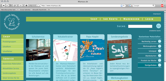 Webseite – Miamaus | Gestaltung der Webseite für den Miamaus Verlag | 2008